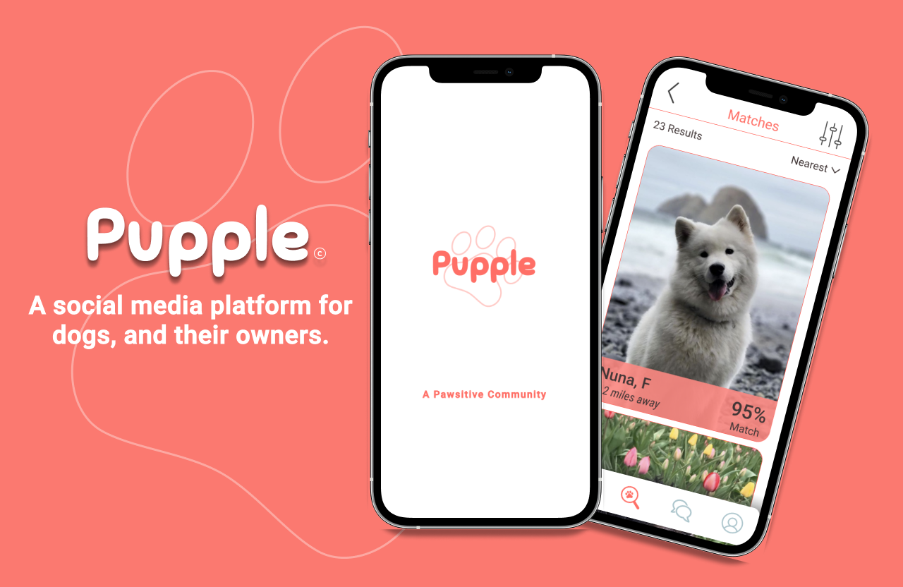 Pupple (Pups + People) is an online community helping connect dogs based on location, characterization, and traits.
