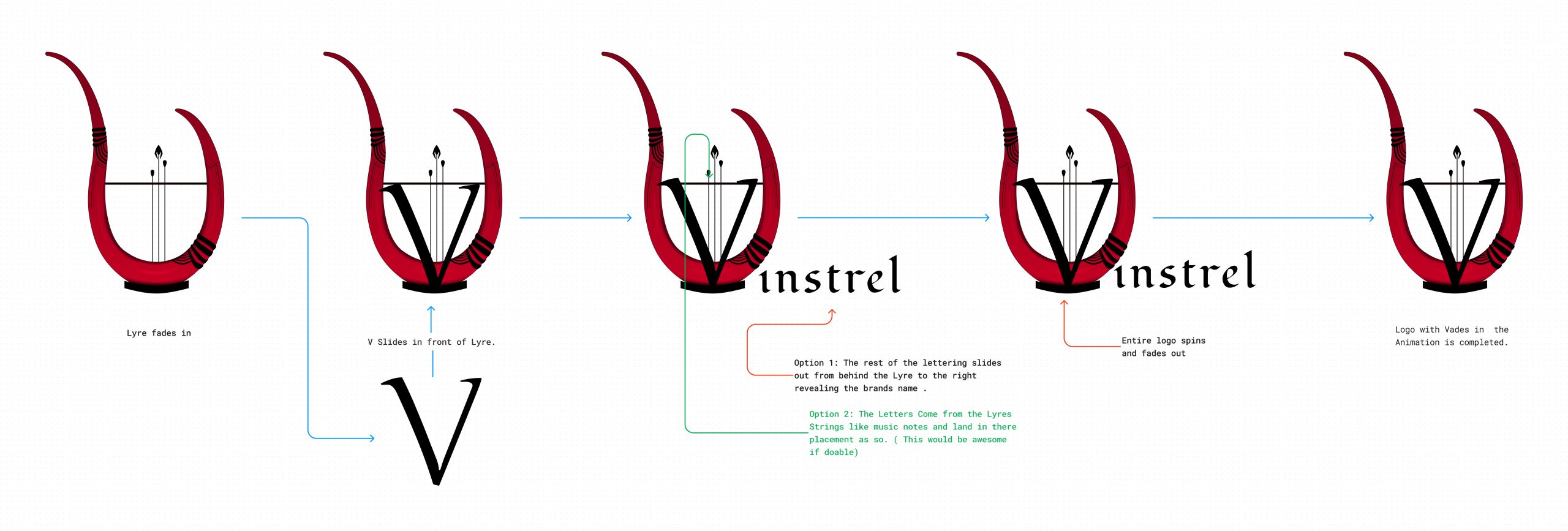 Throughout the development of the website, a significant challenge emerged when incorporating Vinstrel’s logo into the hero image. To overcome this, I proposed an opening animation of the logo that would serve two purposes: engage the viewer without relying on hero imagery and offer a glimpse into the meaning behind the name Vinstrel. Just like a Minstrel, it would tell a story!